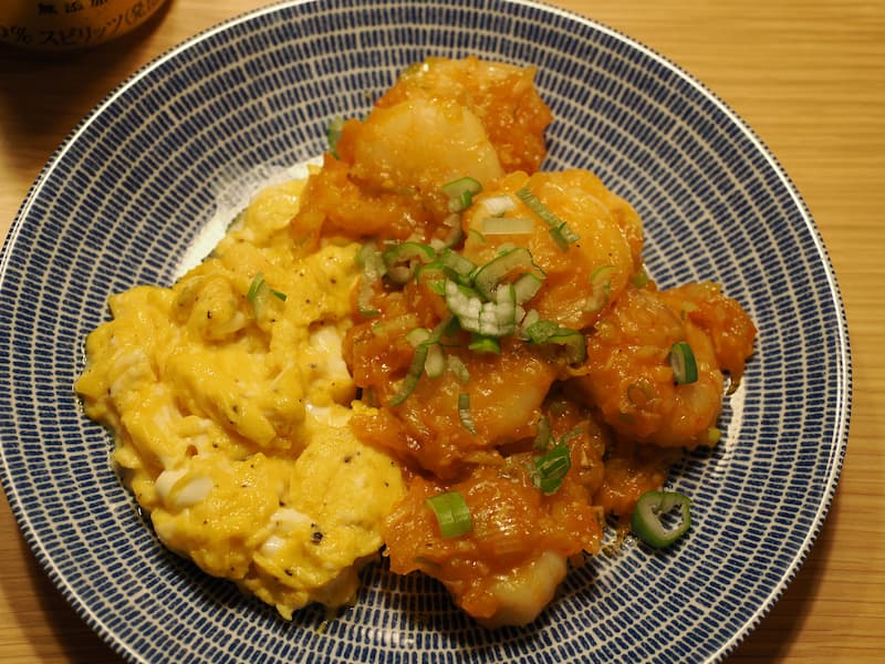 - スクランブルエッグの上に乗せて出来上がり