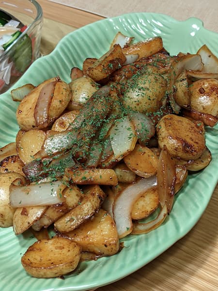 - 水分が飛んで焼いたら盛り付ける