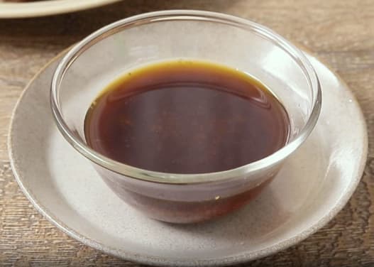 - 小皿にウスターソース、みりん、オイスターソース、ケチャップ、鶏ガラスープの素、砂糖、酒、カレー粉を入れて混ぜる