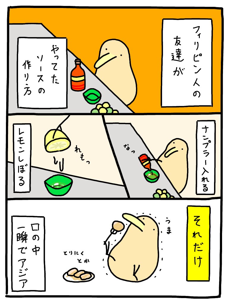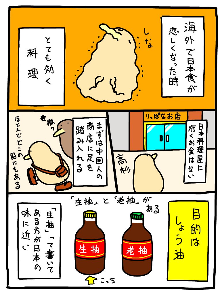 海外に長期間行くと日本にいるときほど食事に選択肢がなく食事がパターン化してきます。かと言って、ホテルでは冷蔵庫もキッチンもないので自分で料理ができないです。そんな時の対処法の一つとしていい漫画があったので転載させていただきます。